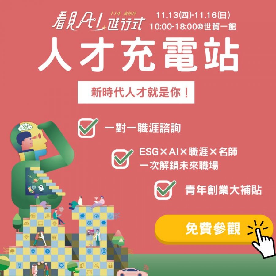 AI 正在改變世界,也讓焦慮、轉職迷惘與技能落差成為日常。2025 資訊月 × 臺灣教育科技展「人才充電站」以「AI 時代人才新解方」為核心,陪伴求職者、上班族、轉職者與中高齡人才一起迎戰職場挑戰。