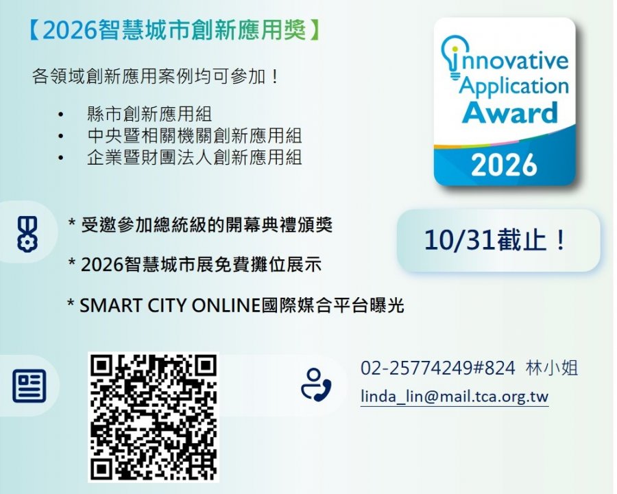 獎項詳情: https://smartcity.org.tw/2026smartcity_award.php