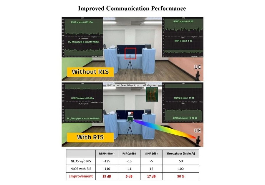 「可重構智慧表面」(Reconfigurable Intelligent Surface, RIS)技術利用可編程的超材料反射單元,透過動態調控反射相位與方向,讓訊號得以繞過障礙並精準傳遞,能有效提升訊號覆蓋與品質。