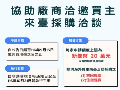 115–116年「開拓海外多元市場-協助廠商洽邀買主來臺洽談及採購案」申請須知