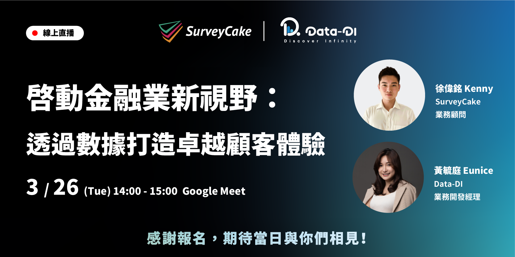 Data-DI X SurveyCake 即將在 3/26 推出精彩的線上講座啦!