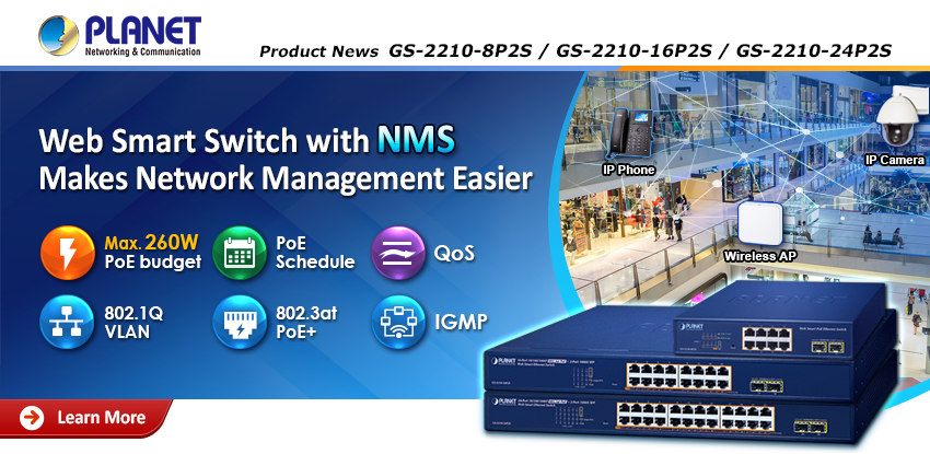GS-2210 PoE Smart Ethernet Switch comes with user-friendly web management interface and intelligent PoE function that enable non-professional users to easily manage the remote network.