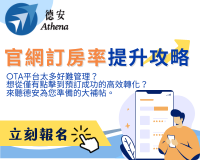 您是否正在努力提高您飯店官網的訂房率? 是時候讓您的飯店脫穎而出,吸引更多旅客預訂您的客房了! 我們精心準備了一個針對提升官網訂房的訂房率的課程,專為中小旅宿量身訂製,快來了解看看。 在這個課程中,您將了解: 1. 增加官網預訂吸引力小撇步 2. 如何同時管理多種OTA平台 3. 德安能幫助您增加訂房時收益的產品 課程詳情: 日期:4/24(三) 時間:14:00-14:40 地點:Teams線上會議室 ◇更多內容、更多場次,點擊下方網址立刻報名◇