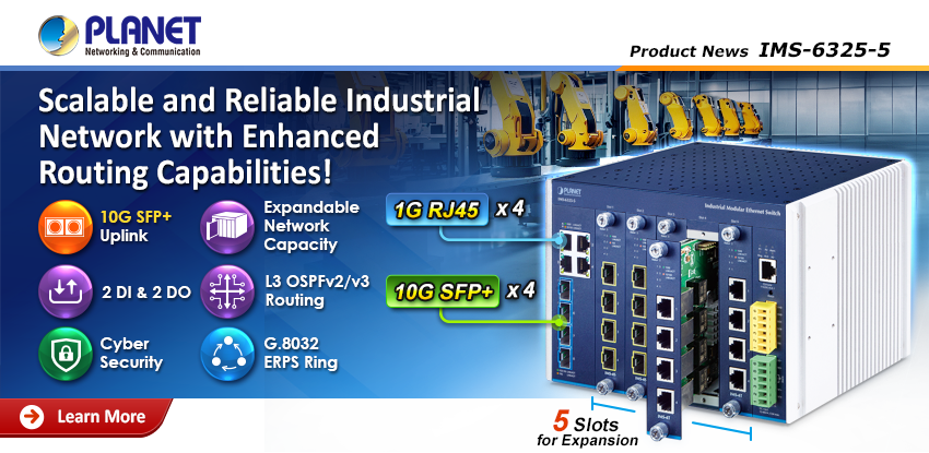 【IMS-6325-5|彈性延展智慧網路布建 - 工業級模組化10吋機架網管型交換器】