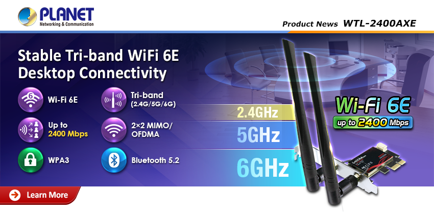 【WTL-2400AXE|穩定高速桌機無線連網 - 802.11AX 2400Mbps三頻Wi-Fi 6E 無線網卡】