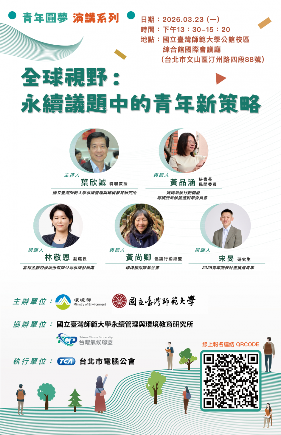 【免費報名】環境部青年參與氣候行動系列活動_「全球視野:永續議題中的青年新策略」師大場