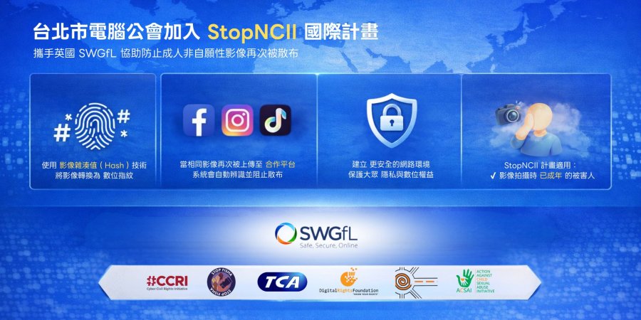 台北市電腦公會表示,希望透過與國際機構的合作,讓台灣被害人也能使用全球防護機制,進一步提升影像防護的效率與保障。